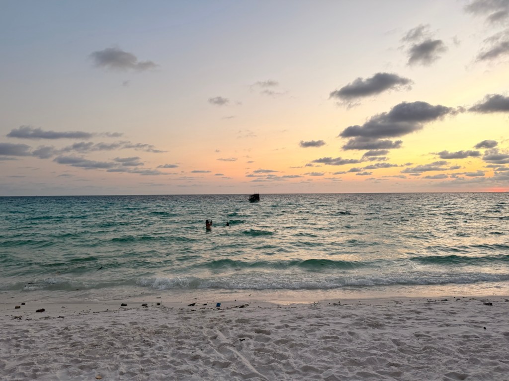 Sunset at Soksan Natura Beach is a breathtaking experience. As the sun begins to descend, the sky transforms into a mesmerizing canvas of warm oranges, deep purples, and soft pinks, reflecting beautifully on the calm, crystal-clear waters. The long stretch of white sand glows under the fading light, and the gentle waves create a soothing soundtrack as they lap against the shore.